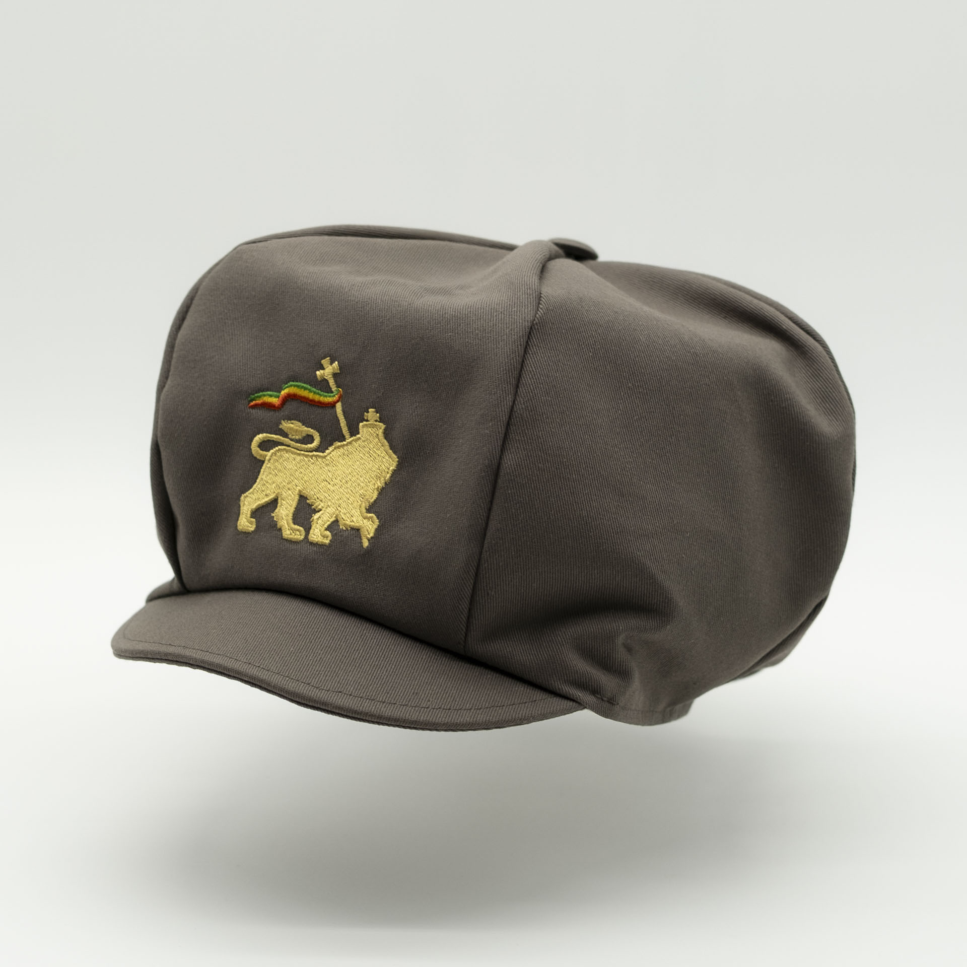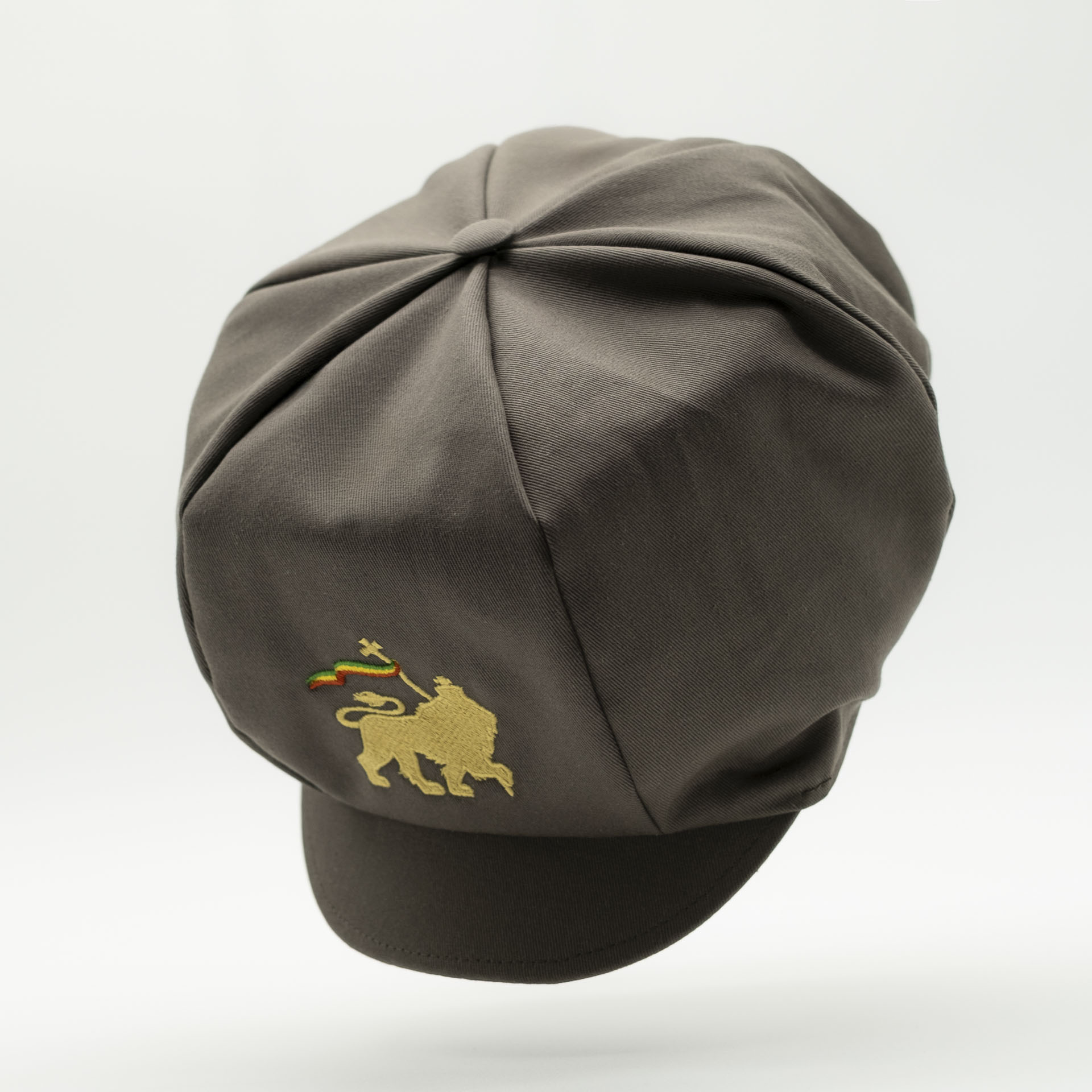 Brown Rasta hat for dreadlocks, featuring a stylish golden Lion of Judah embroidery. Handcrafted from high-quality Oeko-Tex cotton and lined with breathable ecru cotton. Its elastic headband ensures a perfect fit and all-day comfort.