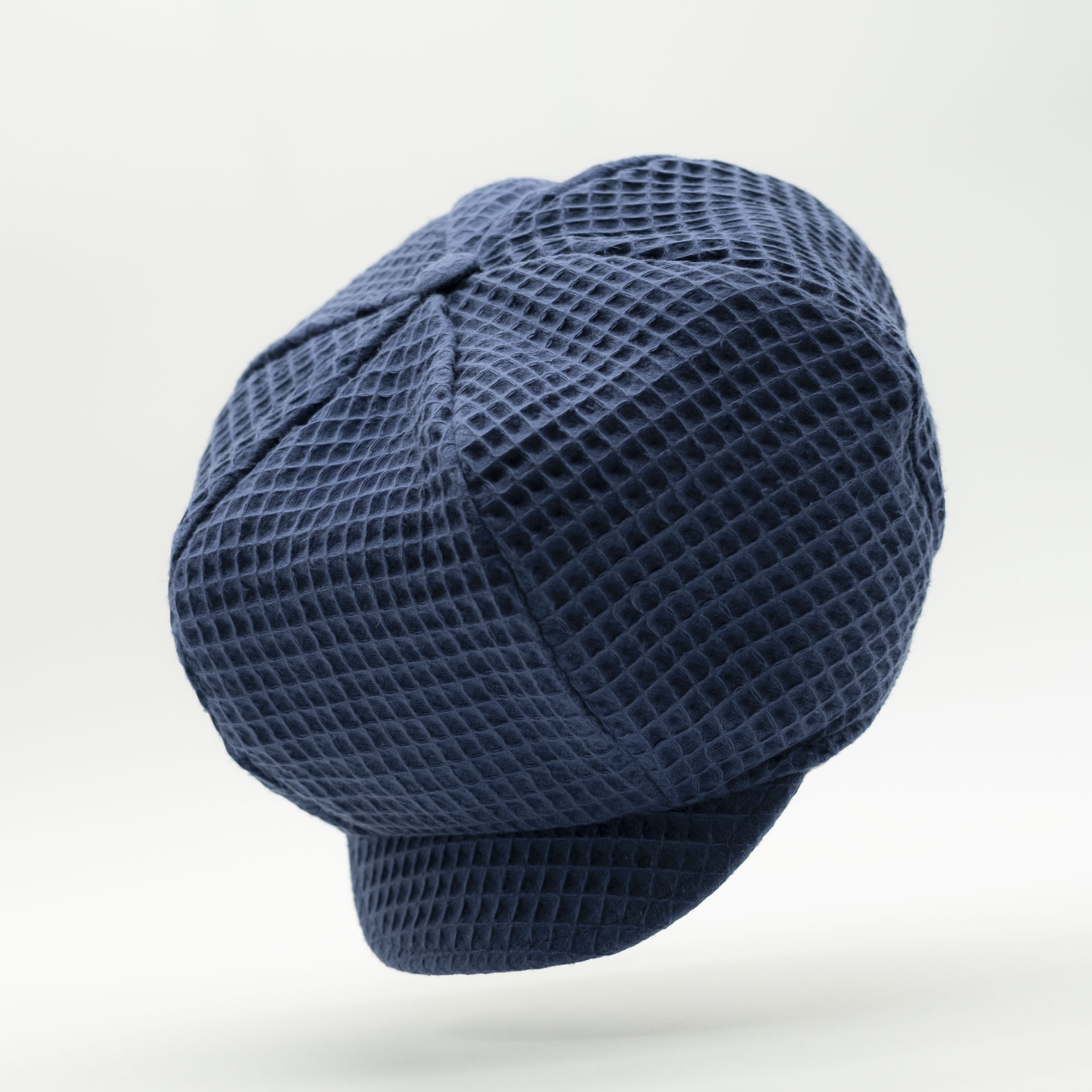 This oversized Gavroche-style dreadlocks Rasta hat is designed in blue honeycomb cotton with its white lining and an elastic headband.